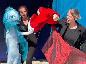 De nieuwe voorstelling Sterren van de zee is een spannend onderwatersprookje met grote poppen en muziek over de verboden liefde tussen een zeemeermin en een zeepaard en over een vuurdraak die de zee bedreigt.