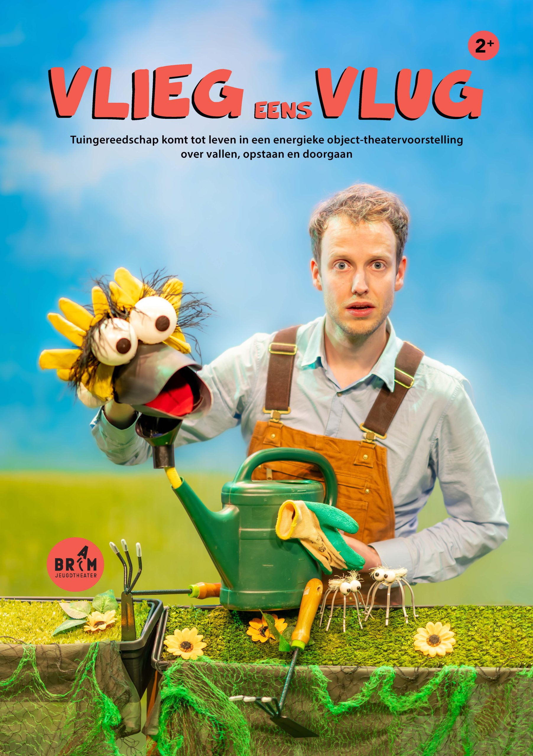 Vlieg eens vlug is een beeldende voorstelling vol poppen en slapstick voor iedereen vanaf 2 jaar. Tuingereedschap komt tot leven en verandert voor je ogen in tuindieren. Samen met de kinderen dansen, zingen en moedigen we de tuinman aan om meer te kunnen dan hij ooit had durven dromen.