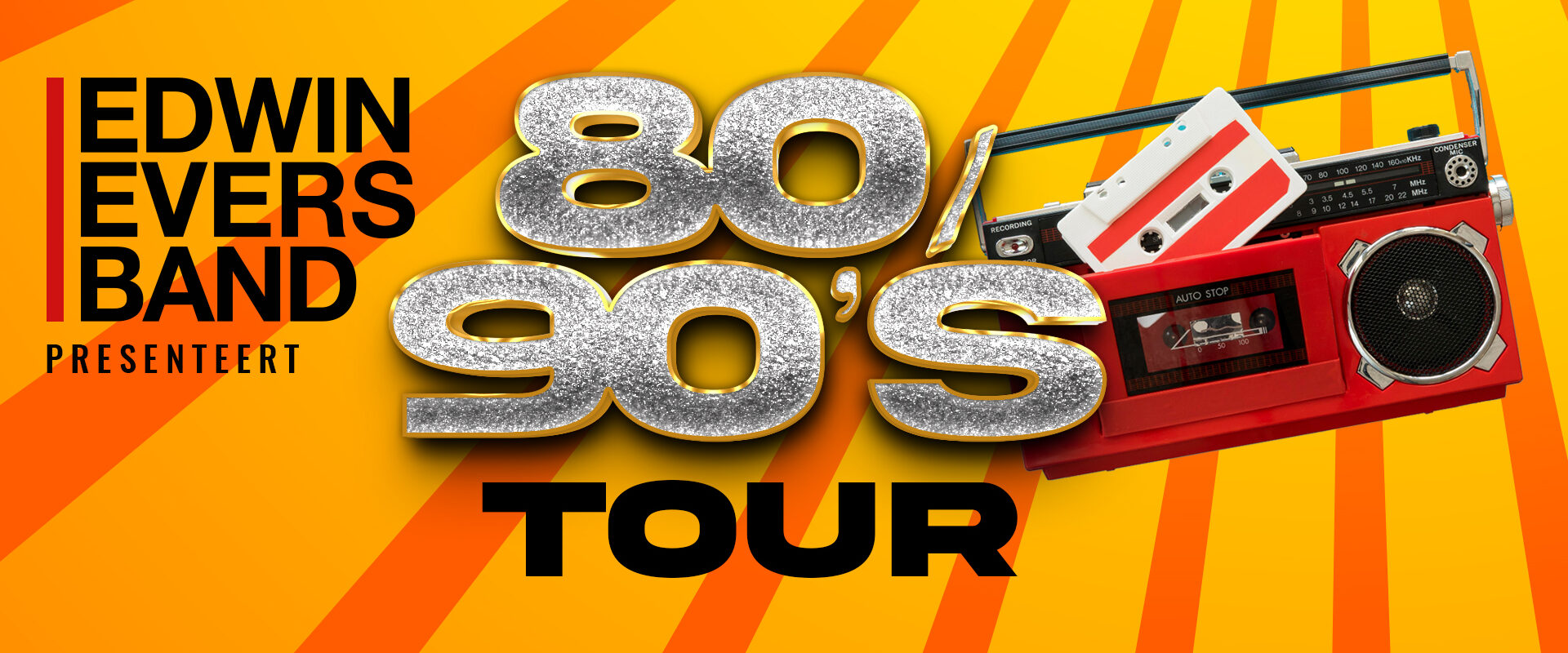 De afgelopen jaren heeft de Edwin Evers Band twee shows gedaan met uitsluitend muziek uit de jaren 80! Gezien de super enthousiaste en bijna unanieme reacties vanuit het publiek op de vraag: “welk decennium willen jullie naast de Jaren 80 in onze volgende show horen?”….kan de band niet anders dan muziek uit de jaren 90 toevoegen aan deze nieuwe show. En met plezier!!