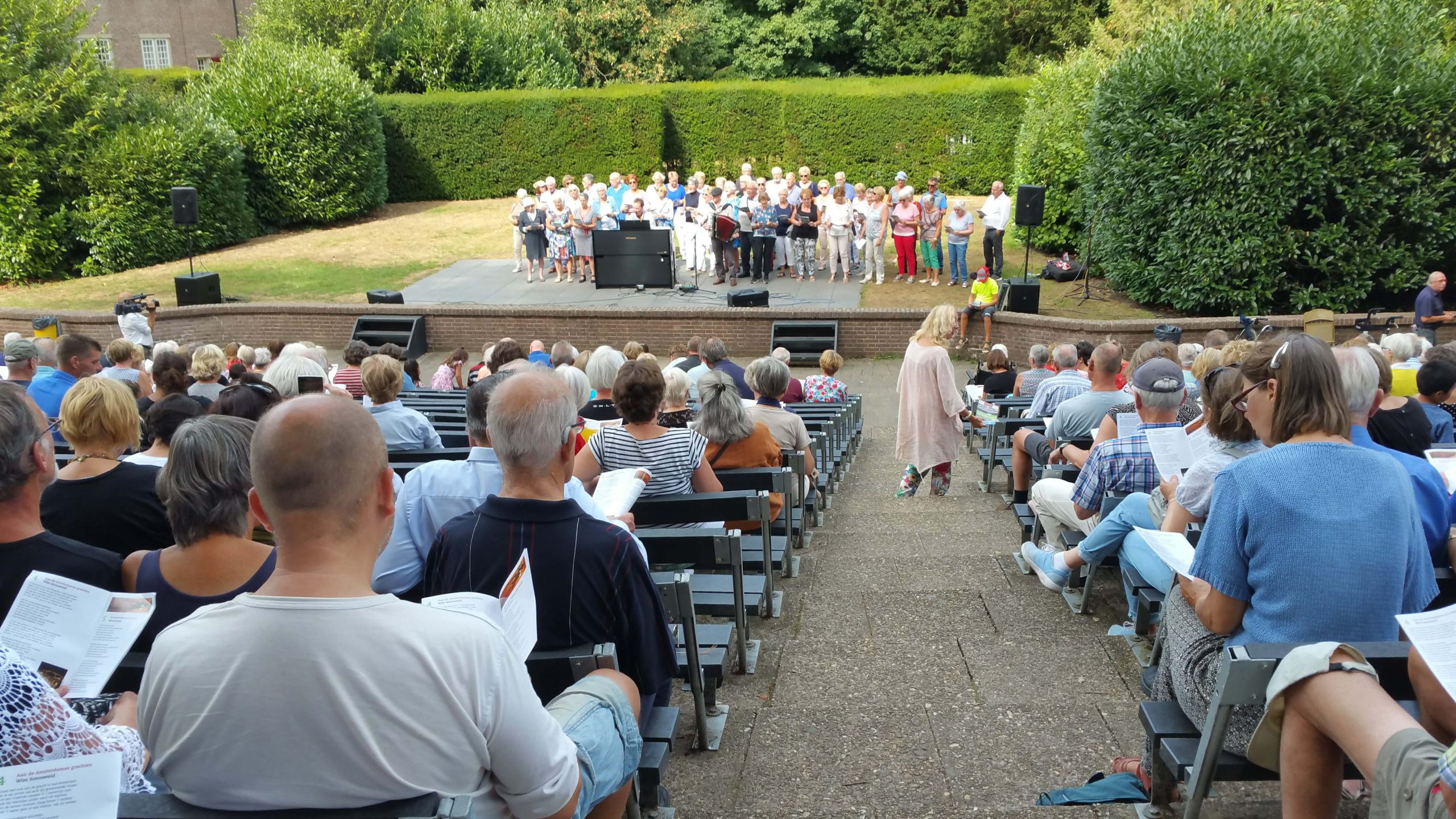 Het Meezingcafé is elke tweede vrijdag van de maand geopend in het TorenlaanTheater. Het is een activiteit van het theater en de Algemene Seniorenvereniging Zeist. Deze middag is het voor één keer in de open lucht, om het tweede lustrum van de ASZ te vieren.